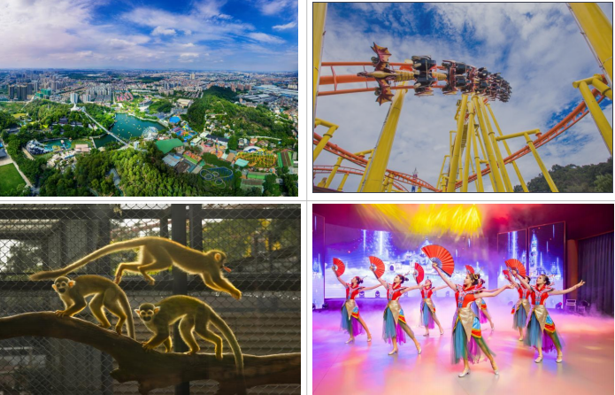 有玻璃橋、蜜蜜花海/蘭苑、動(dòng)物園、游樂園、圣德堡飄雪樂園、海洋劇場(chǎng)、萌寵劇場(chǎng)??旎罟却笪枧_(tái)等項(xiàng)目。