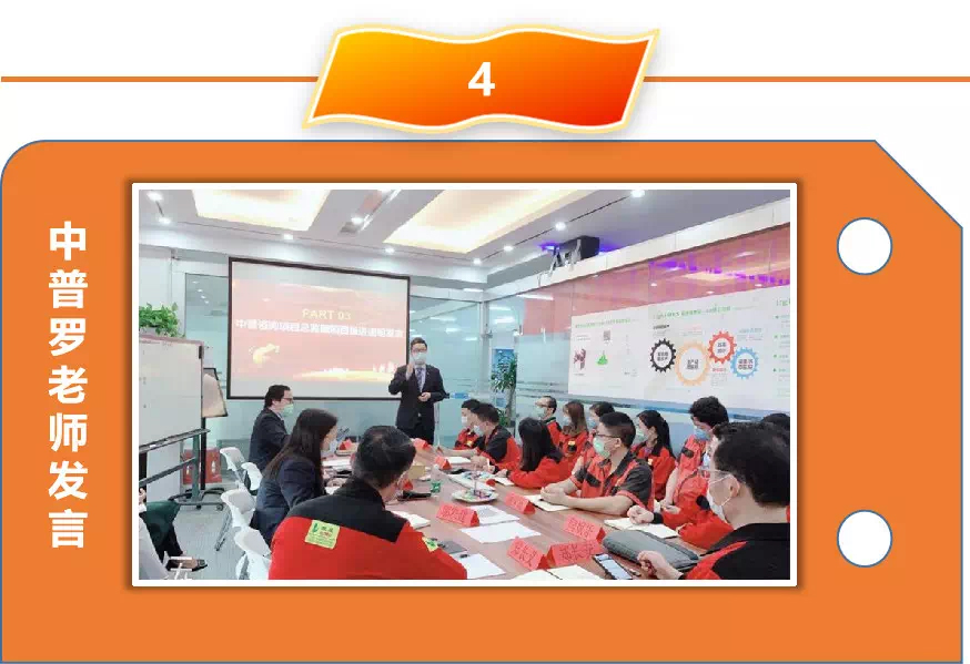 中普咨詢項目經(jīng)理馬老師首先回顧了前期的調(diào)研情況,對診斷情況進行了簡要說明與點評,然后從“標(biāo)準(zhǔn)化改善”“物料配送體系””布局與生產(chǎn)計劃流程梳理”“項目課題改善重點攻關(guān)”四個模塊重點介紹了接下來的具體的推行計劃,做什么,怎么做,各項改善任務(wù)的節(jié)點控制等。