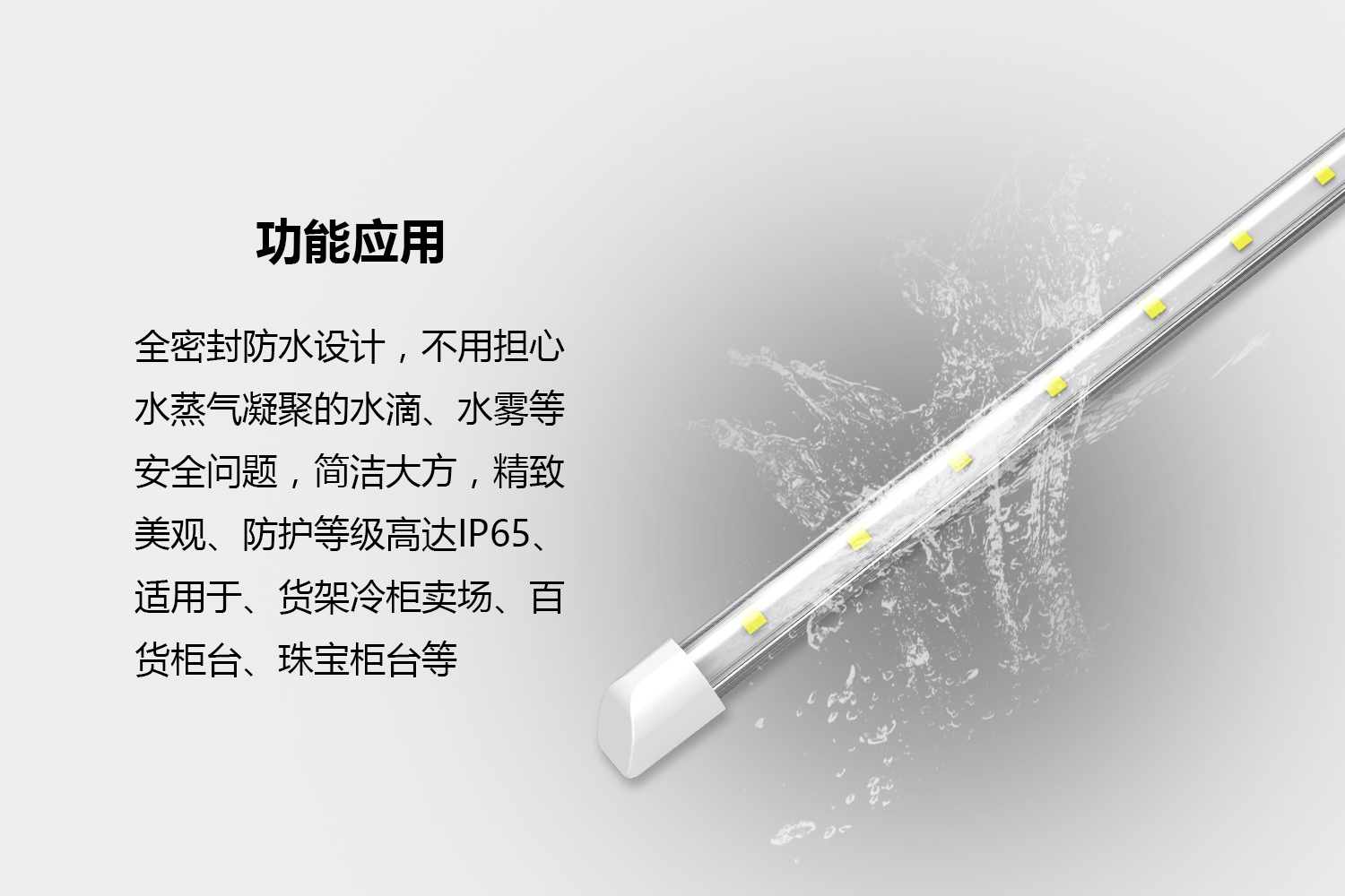 冷柜燈:全密封防水設(shè)計,IP65,不再擔(dān)心水蒸氣凝聚的水滴、水霧,的安全問題